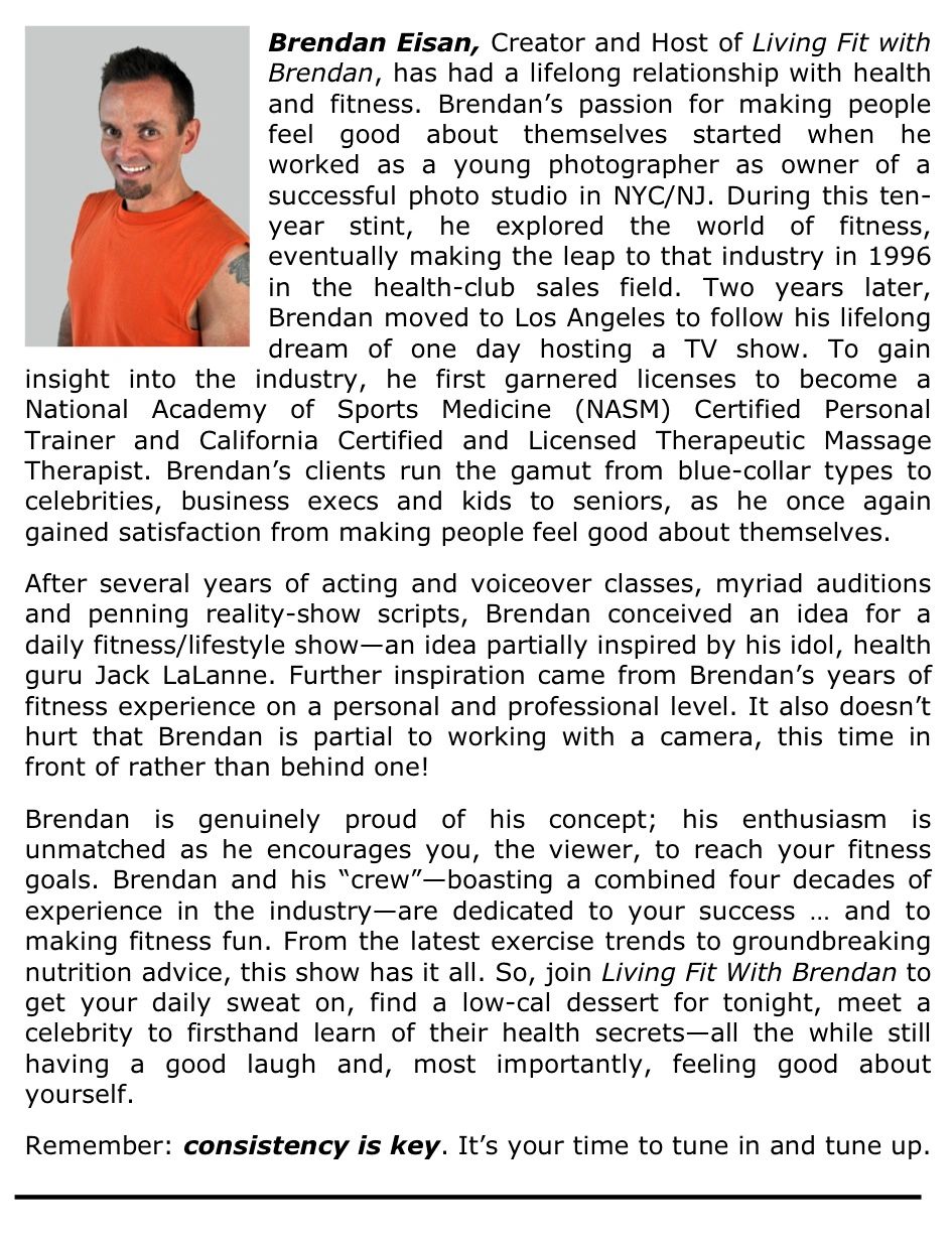 Please go to the Living Fit With Brendan fan page on Face Book and LIKE us there.